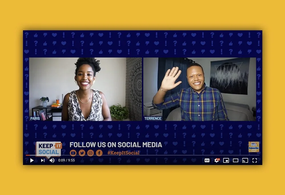 Brand package, title cards, on-screen graphics, and social media template design for Keep It Social, a new digital-first web series from WGBH focusing on the latest new in social media.