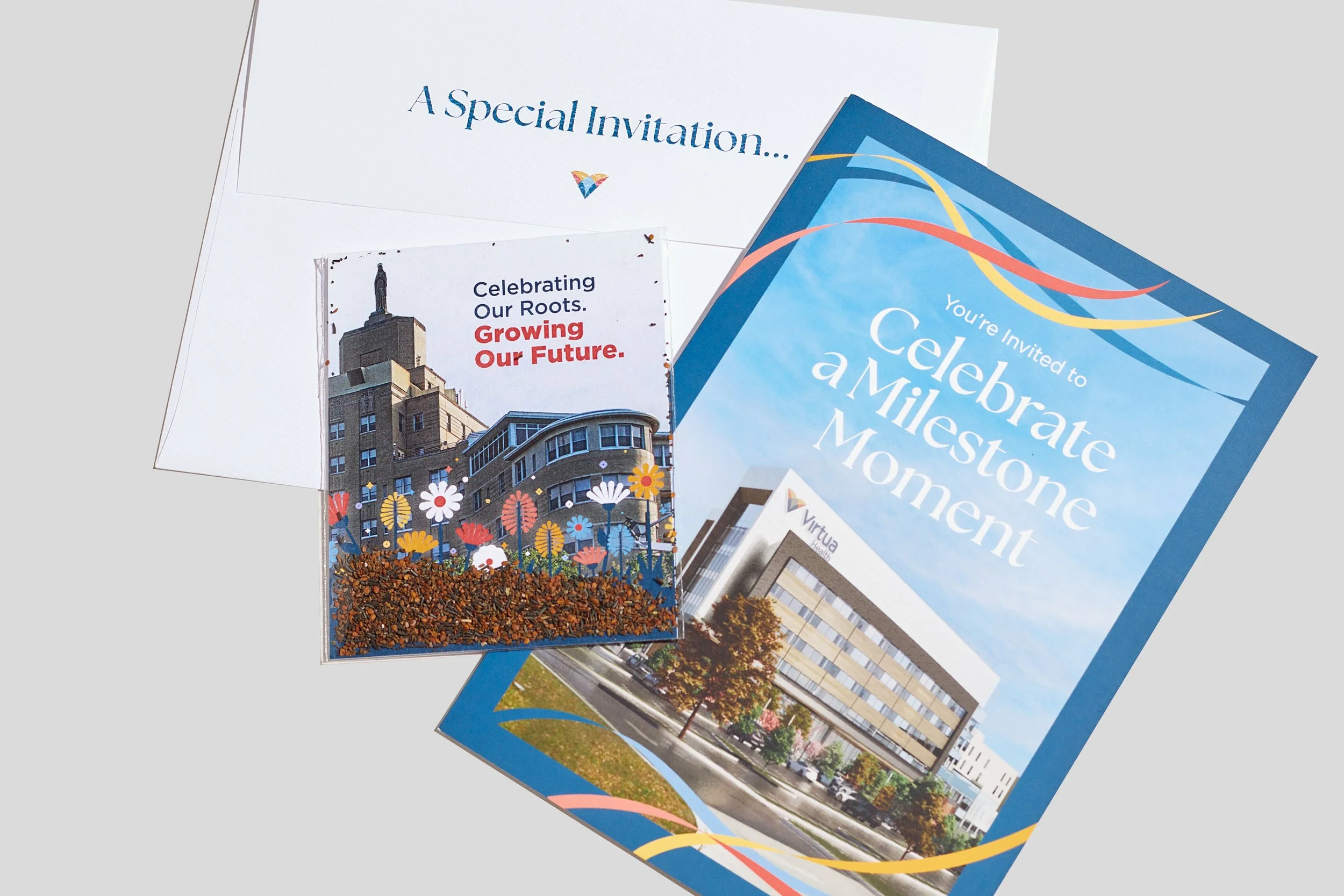 In 2025 Virtua Health celebrated the 75th Anniversary of Virtua Our Lady of Lourdes Hospital in Camden, New Jersey. Virtua hosted a series of events in honor of the milestone with a Community Health Day, and a Groundblessing Ceremony to commemorate construction of the new hospital expansion. Items for the events included signage, event invitations, gifts for event attendees, and posters with information about the hospital’s history and architectural renderings of the new construction.